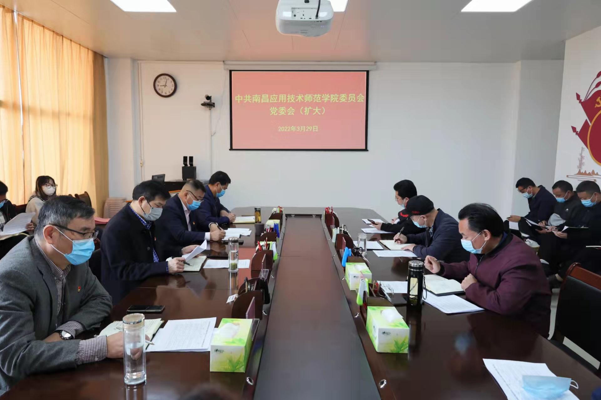 3月29日,学校在行政楼第一会议室召开中共南昌应用技术师范学院委员会党委会(扩大)会议,专题研究部署2022年度学校平安校园建设和意识形态工作。校党委副书记、校长陈宇,校党委副书记、副校长崔晨,校党委委员、校长助理郭宇,校长助理郑行忠等校领导班子成员出席会议,各部门负责人、各二级学院书记、院长参加会议。会议由校党委委员、校长助理陶其辉主持。