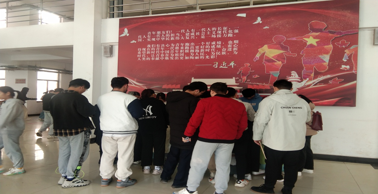 2021年12月15日中午11点35分,南昌应用技术师范学院在教育学院团总支学生会体育部的组织下,在教学楼一楼开展了主题为“请党放心,强国有我”的十九届六中全会的签名活动。此次活动面向南昌应用技术师范学院的全体学生,活动一开始便吸引了众多学生参与其中。