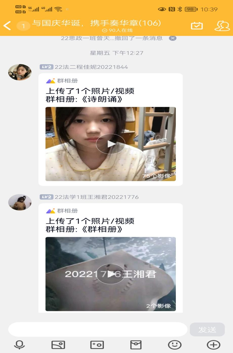 随后在9月30日,我院举办线上“与国庆华诞,携手奏华章”国庆祝福活动,以为祖国唱一首赞歌和运用诗朗诵的方式来进行。活动期间,学生们热情高涨,学生会工作人员收集到同学们纷纷发来的祝福视频。大家能够在诗词和歌曲的维度中体会祖国的繁荣昌盛和一路走来的艰辛。