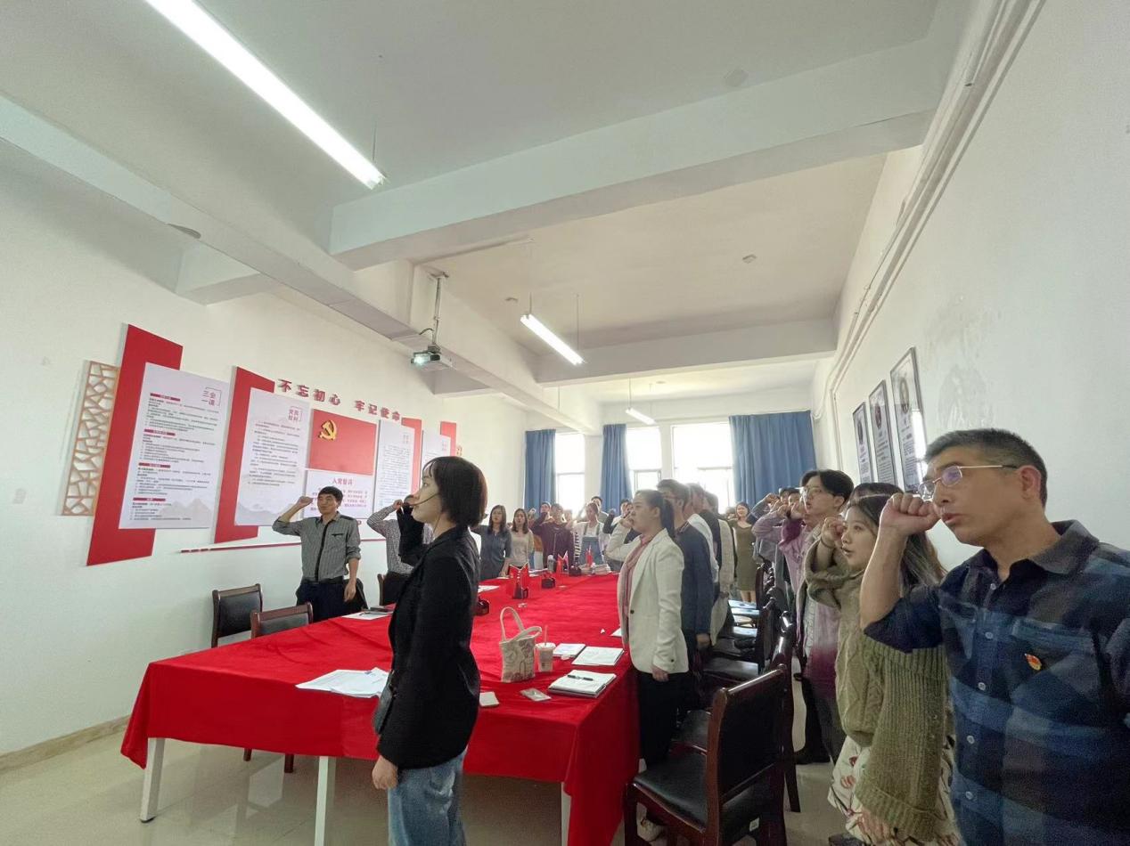 随后,全体教职工进行师德师风宣誓。在思政教师熊嘉瑶的带领下,老师们高举右拳,庄严宣誓:“我是光荣的人民教师,我庄严宣誓: 忠于人民的教育事业,履行教师的神圣职责。爱国守法、以德育人;爱岗敬业、关爱学生;刻苦钻研,严谨笃学;勇于创新 奋发进取...”铮铮誓言表达了我院教师对教书育人的执着追求。