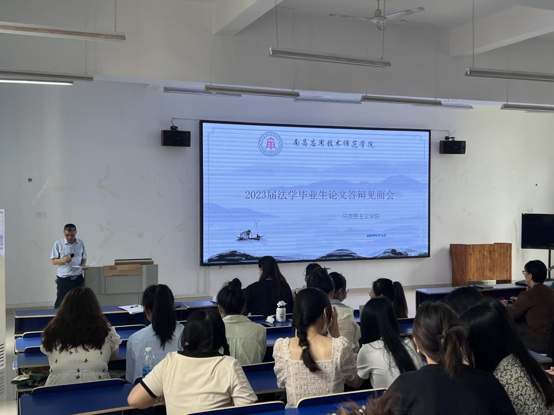 为提高毕业论文的整体质量,促进师生交流,确保2023届法学毕业论文答辩工作有序开展,我院于2023年5月16日上午9:00在2311教室召开2023届法学毕业生答辩师生见面会。我院院长文道贵、教学副院长卢林保、法学教研室主任、各答辩小组成员及2023届法学毕业生全员参加。