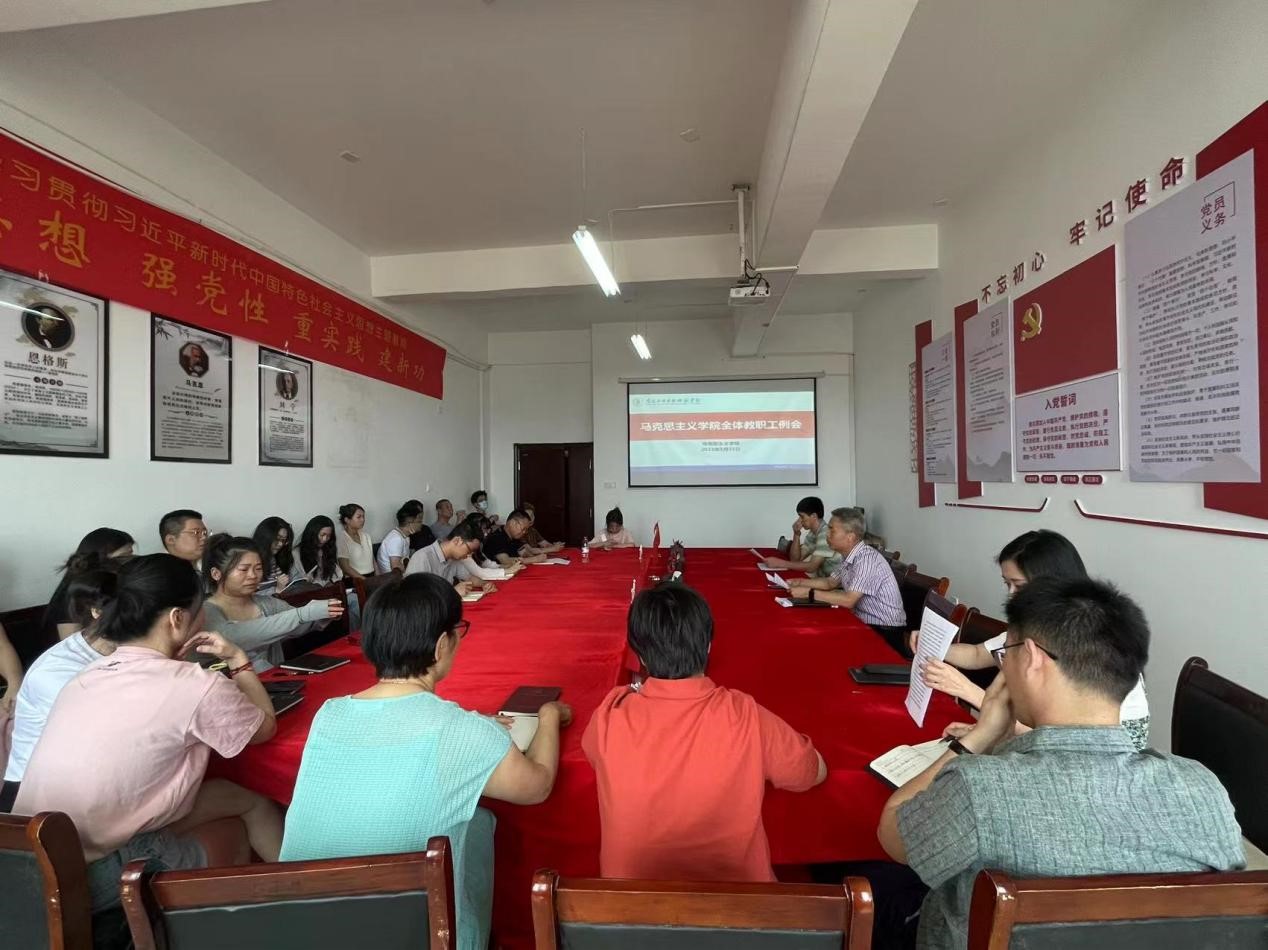 院长文道贵传达了全国高校思政课建设工作调度会会议主要内容,通报了近期学校召开的信访工作、就业工作等会议精神。强调习近平新时代中国特色社会主义思想概论课程是思政课课程中的关键课程,思政教师要进一步提高政治站位,加强理论学习,确保教学质量。同时,要进一步推进学院毕业生就业工作,要求全体教职工积极建言献策,为学生就业提供指导与帮助。