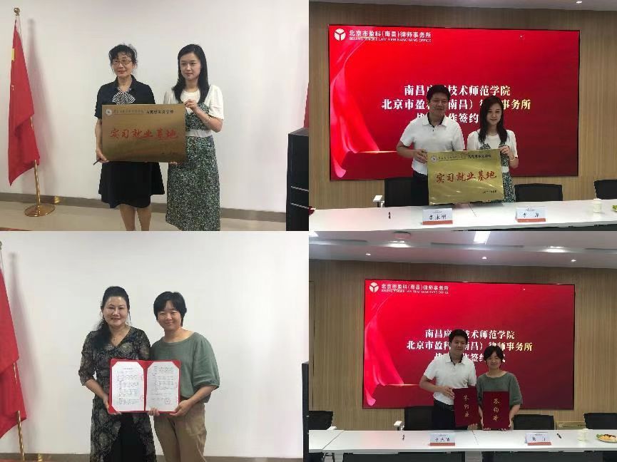 本次访企拓岗,分别与江西华昌律师事务所和北京市盈科(南昌)律师事务所签定了合作协议,新建了实习就业基地并挂牌,聘请了北京市盈科(南昌)律师事务所胡春彪、陈倩红、刘飞飞、单钰洁四名资深律师担任校外导师。校企双方就律师进课堂、提供真实法律案例用于课程建设等方面达成了共识。