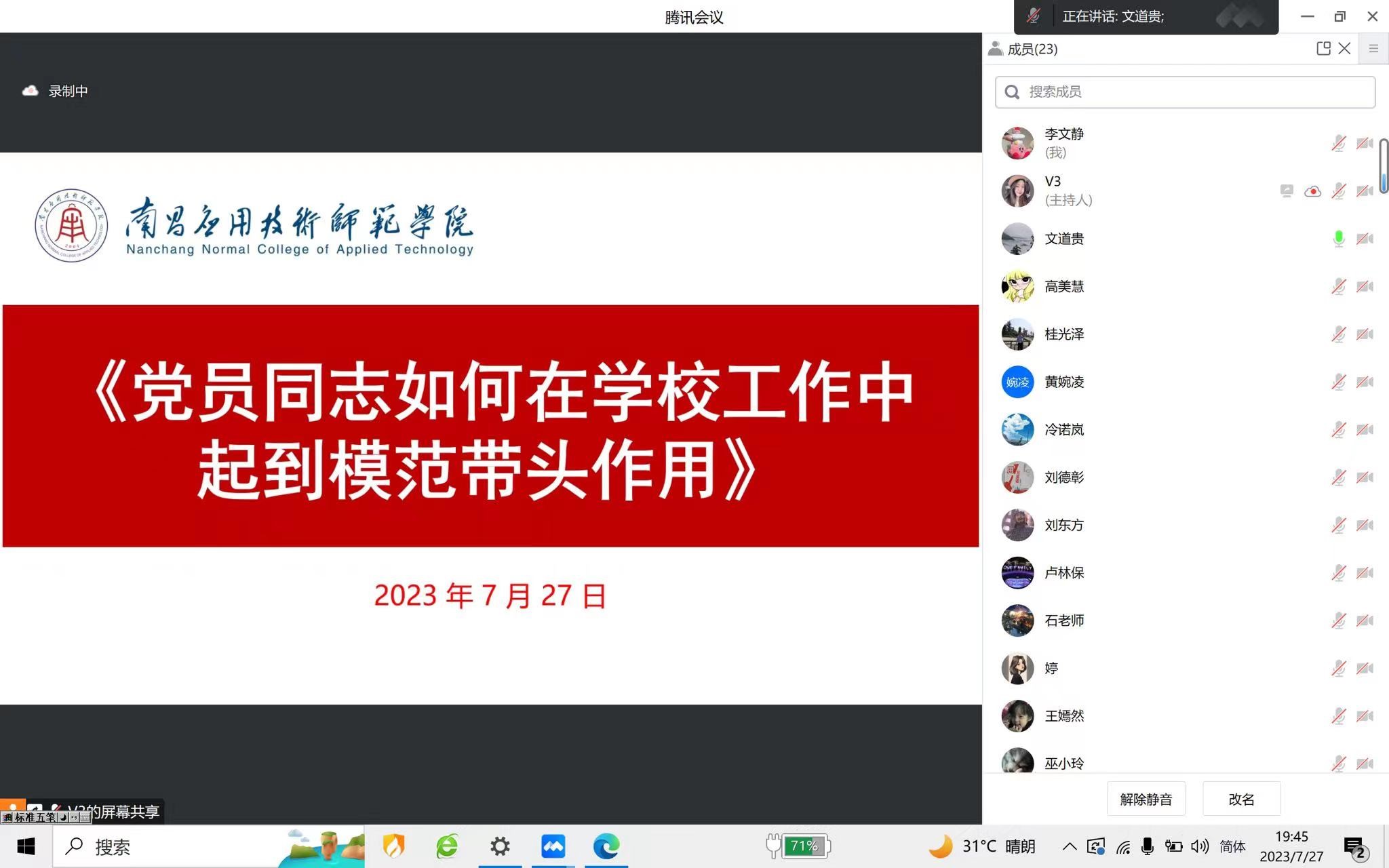 为激励引导全院广大党员、干部、群众坚定不移听党话、感党恩、跟党走,凝心聚力、真抓实干推动学院高质量发展,我院于2023年7月27日开展“学风践悟 正风提能”主题教育暨2023党员学习日活动,日韩中文字幕亚洲中出内射党总支书记、院长文道贵,党总支副书记李婷,副院长张丹及全体教师党员参与会议。