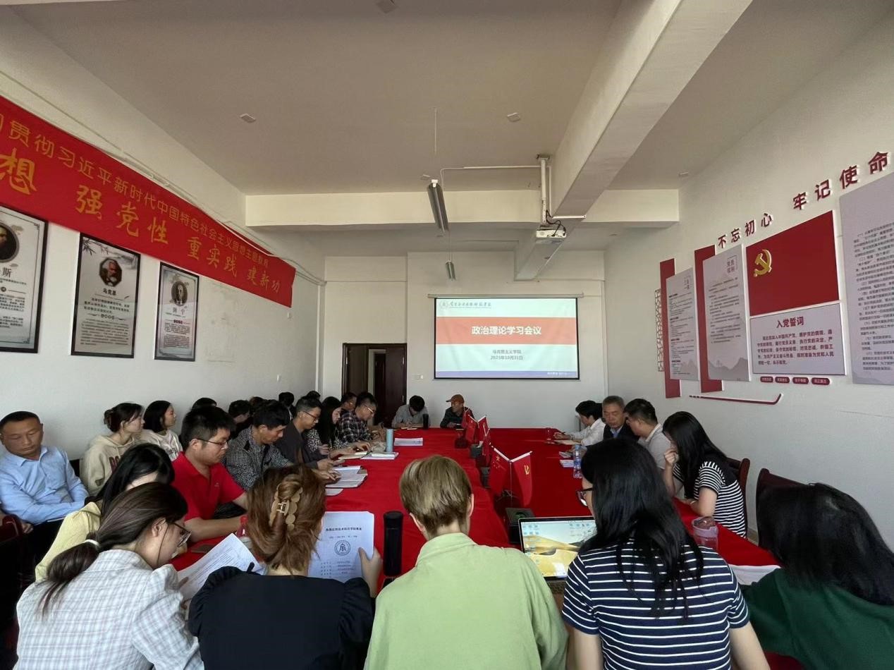 为深入学习贯彻习近平新时代中国特色社会主义思想,坚定共产主义理想信念,切实提高党员教师的政治素养。2023年10月31日下午2点,学院在1511会议室召开了政治理论学习会议。院长文道贵、党总支书记张欣康、党总支副书记李婷、副院长张丹及全体教职工参加此次会议,会议由院长文道贵主持。