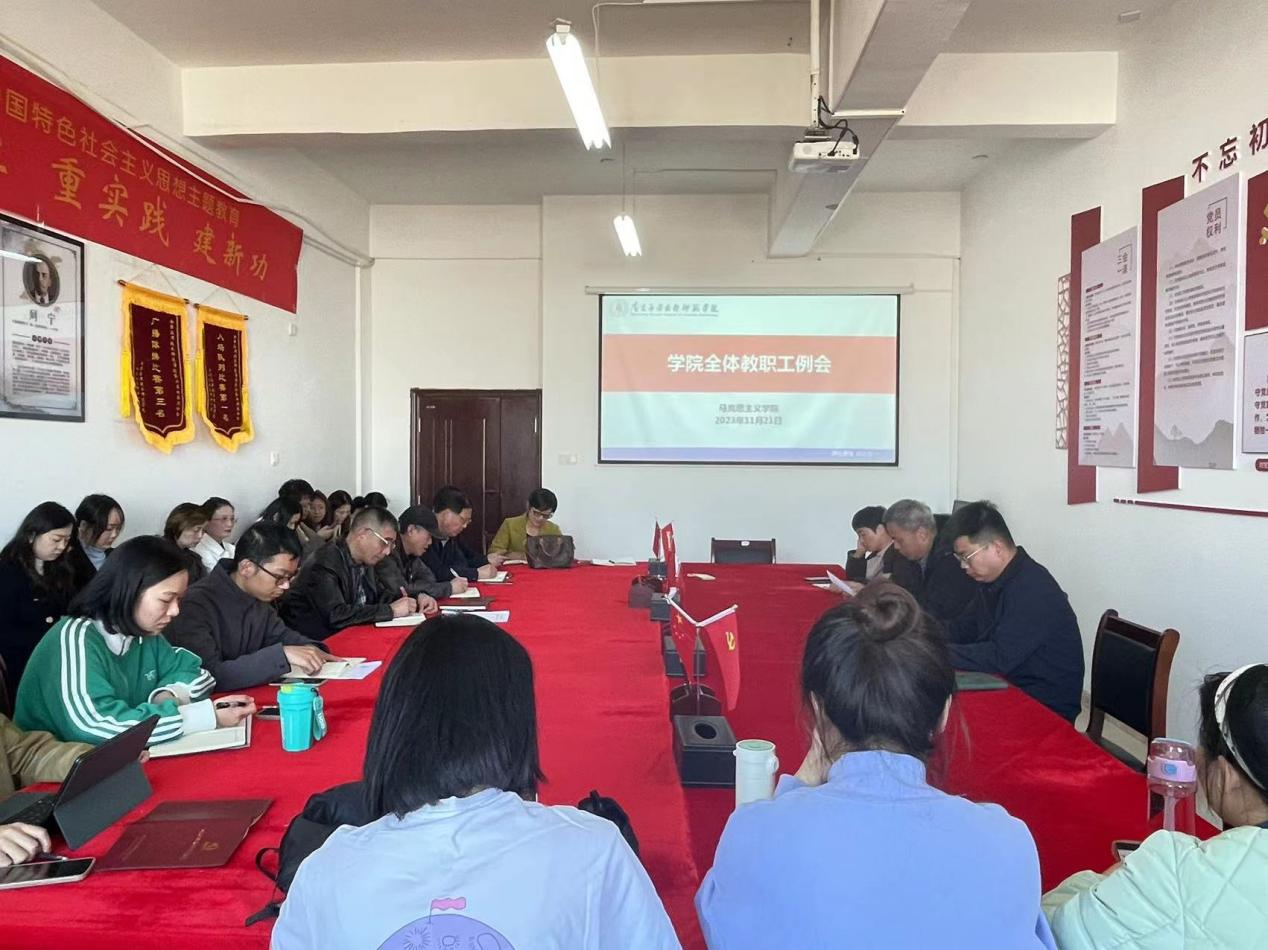 11月21日下午,学院在1511会议室召开全体教职工工作例会,院长文道贵,党总支书记张欣康,副院长张丹及学院全体教职工参加会议,会议由院长文道贵主持。