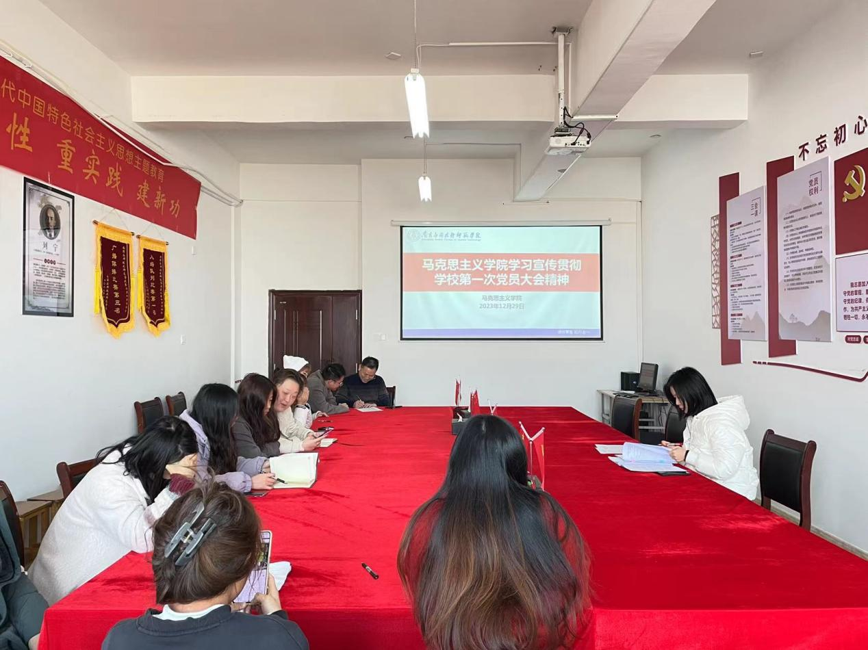 全体与会人员认真研读报告,聆听会议内容。大家纷纷表示,要在学懂学深,弄通悟透,务实笃行上进一步下功夫,立足本职岗位,踔厉奋发、勇毅前行,用实际行动贯彻落实学校第一次党员大会精神。