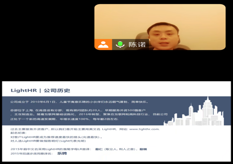 随后陈诺介绍了公司的基本情况与需求,针对招聘岗位工作内容和要求做了详细的说明,并建议广大毕业生初入职场时要能吃苦耐劳、认真工作,在任何职场中都存在着激烈的竞,大家更要把握机遇,提高自身能力。