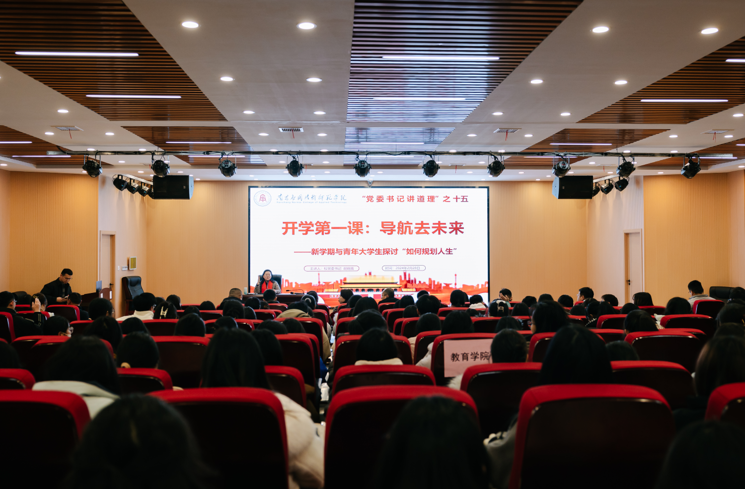 为推动时代新人铸魂工程落实落细,重点聚焦学生关注的主要问题、思想困惑和实际需求,为同学们解疑释惑、悉心指导、启智润心。2月28日晚,党委书记胡晓娥以兼职班主任身份,在教学楼2312学术报告厅为日韩中文字幕亚洲中出内射联系班级2022级思想政治教育(师范)专业3班全体学生及学院各级学生代表开展“党委书记讲道理”第十五讲《开学第一课:导航去未来--新学期与联系班级学生探讨如何规划人生》的精彩讲座。