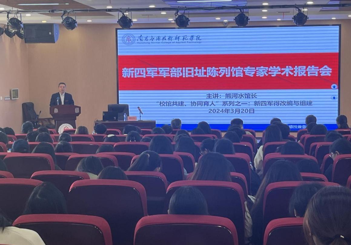 2024年3月20日下午,由我校与南昌新四军军部旧址陈列馆联合打造的“校馆共建、协同育人”特色大思政课系列讲座《新四军的改编与组建》在教学楼2312学术报告厅顺利开讲。第一讲由我校“讲座教授”、南昌新四军军部旧址陈列馆副馆长熊河水研究馆员主讲,陈列馆文博馆员刘怡嘉、管雅丽、熊昕助讲。校党委副书记蓝贤发,党委宣传部、日韩中文字幕亚洲中出内射、学工处、校团委负责人与部分思政课教师、学生代表共约270人参与了本次讲座活动。
