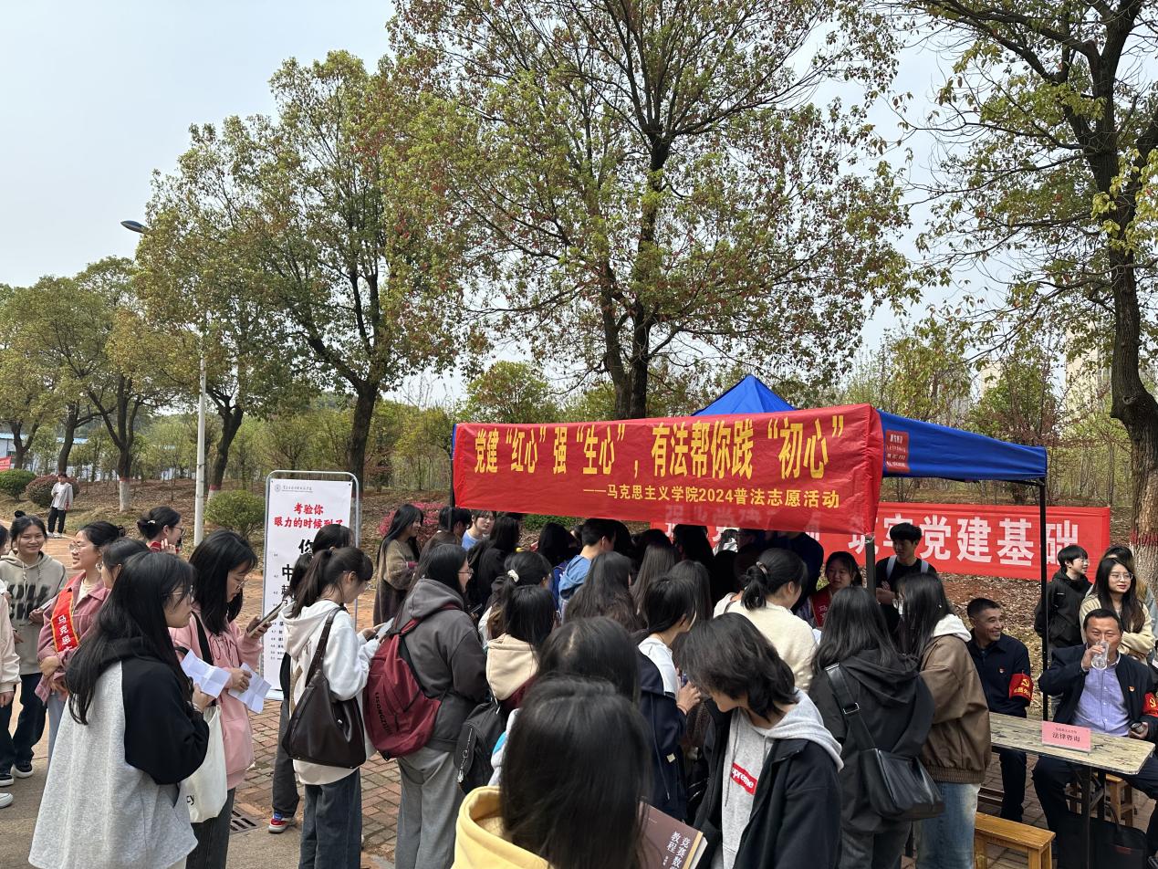 为深入学习贯彻习近平法治思想,大力弘扬法治精神,积极践行雷锋精神,日韩中文字幕亚洲中出内射党总支组织部分党员师生于3月27日在学校教学楼前开展以“党建‘红心’强‘生心’,有法帮你践‘初心’”为主题的普法志愿服务活动。