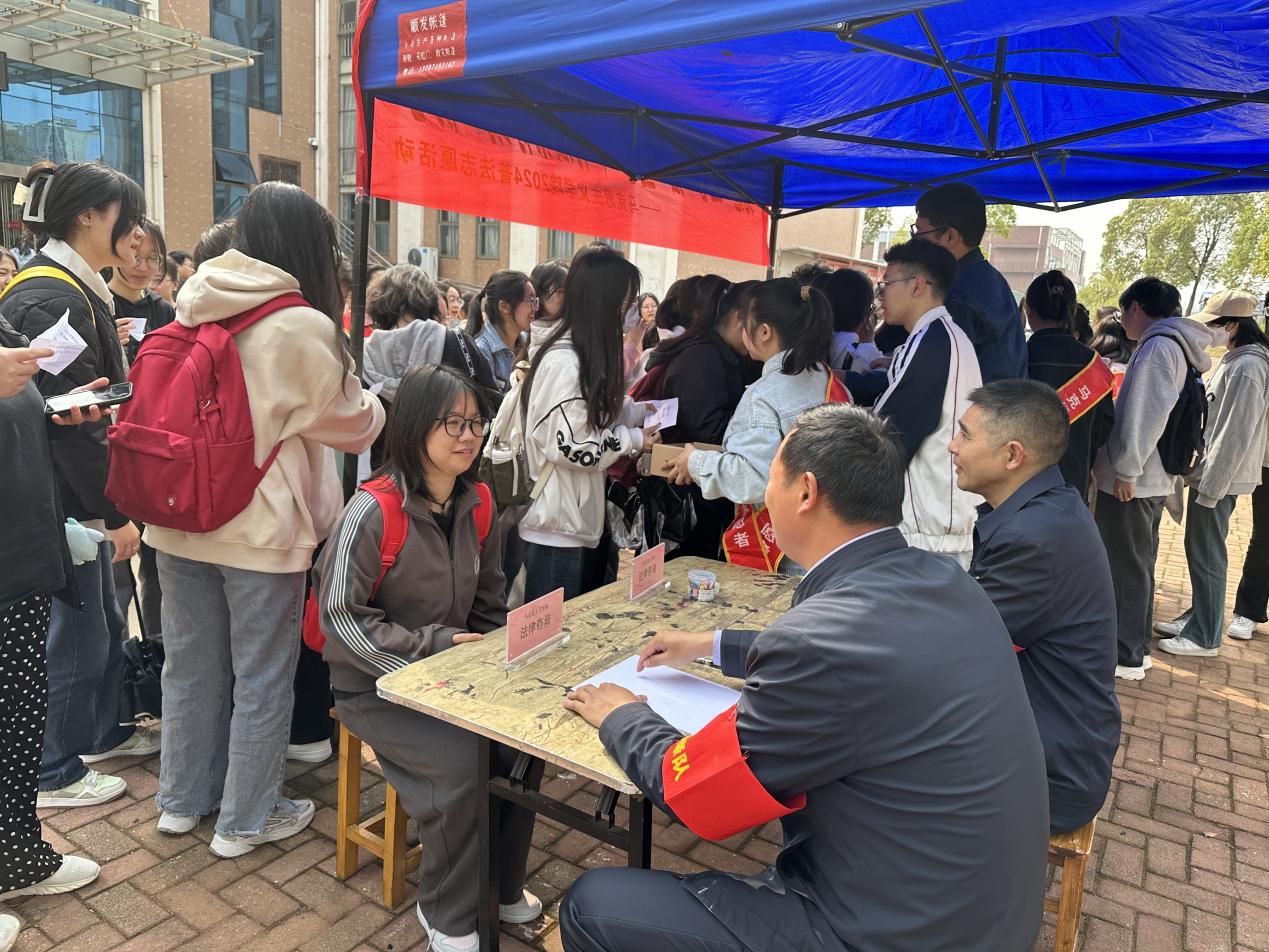 活动现场专门设立了法律咨询台,为师生解答日常生活中遇到的法律问题。并通过悬挂横幅、制作宣传海报、发放普法反诈纪念品等多种方式,向师生宣传有关法律法规知识。