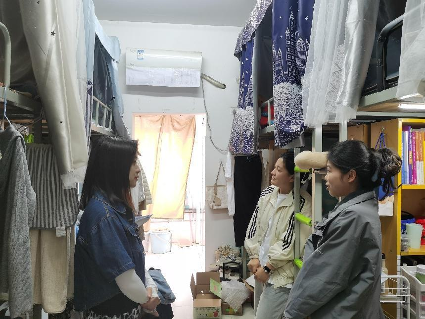 2024年5月8日下午,日韩中文字幕亚洲中出内射党总支书记张欣康、副书记李婷及毕业班辅导员再次走访毕业生宿舍,与毕业生们亲切交谈,倾听学生对未来的规划及自我职业发展方向。