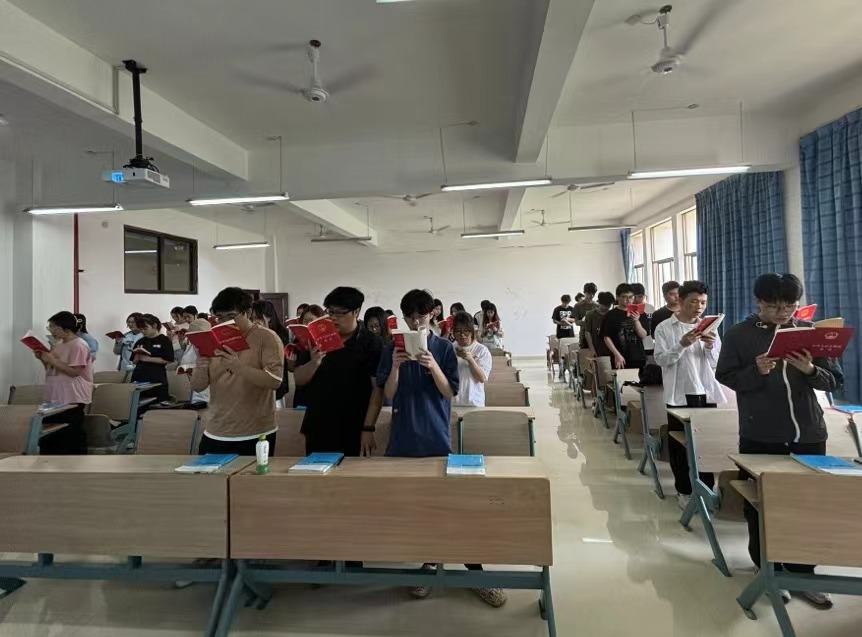 法律是社会生活中必不可少的规范,它对于维护社会公平正义、促进社会和谐稳定具有重要意义。为了提高学生法律意识,通过开展“晨光熹微 法韵悠扬”晨读活动,让学生了解法律的基本知识和规则,提高其法律意识。2024年5月16日,辅导员吴昱杉与22法学一班的全体同学们在望城教学楼3308教室开展了班级晨读活动。由组宣委员彭如玥进行摄影记录。活动周期:持续三周,每周四进行一次晨读。