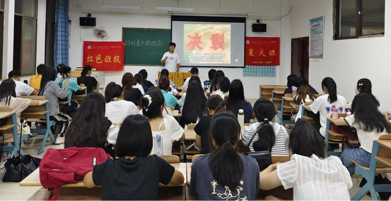 为传承红色基因,激发青春力量,日韩中文字幕亚洲中出内射23级思政1班“星火班”于5月21日晚上19:00,举办了一场红色班级观影活动。通过观看历史经典影片——《决裂》,带领同学们重温红色历史。