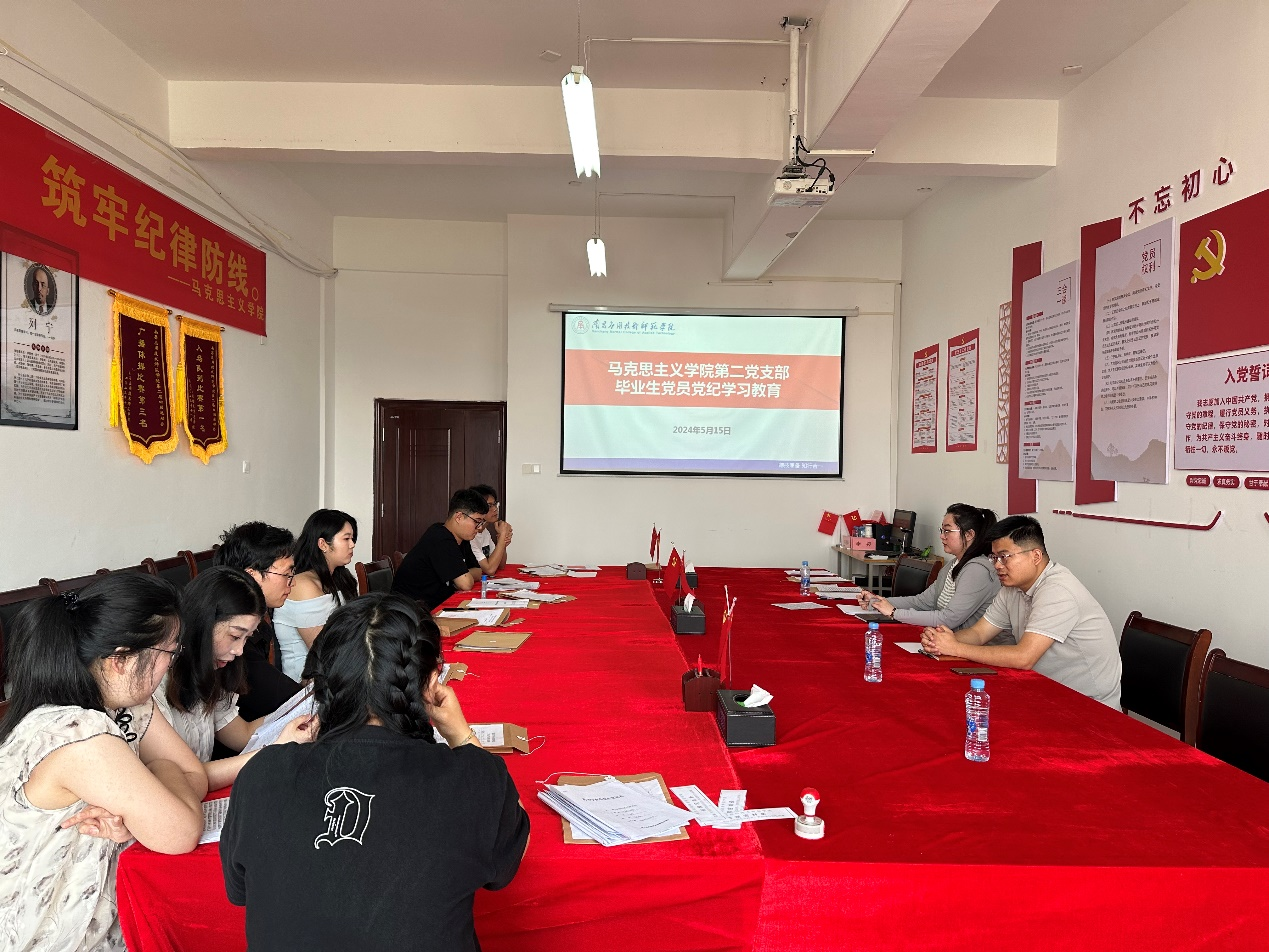 本次党纪学习教育专题党课不仅加深了毕业生党员对党的纪律的认识,也为他们未来的社会生活和工作打下了坚实的思想基础。党支部将继续关注毕业生党员的成长发展,为他们提供持续的支持与帮助。(图文/朱芙玉 初审/吴昱杉 终审/张欣康)