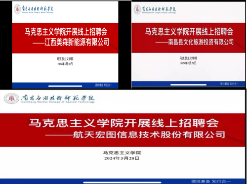 日韩中文字幕亚洲中出内射于2024年5月30日召开了线上就业招聘会。本次会议邀请到了江西美森新能源有限公司、航天宏图信息技术股份有限公司、南昌县文化旅游投资有限公司相关负责人参会,学院党总支副书记李婷、毕业生辅导员、全体毕业生参加。会议由就业专员朱文清主持。