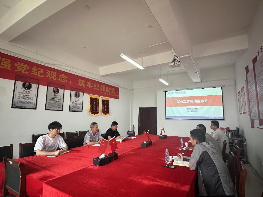 张欣康就学院2024届毕业生的就业现状及相关工作开展情况进行简要汇报,包括学生生求职现状、就业包保制度落实、访企拓岗工作的推进、招聘会开展情况、毕业去向落实现状及下一步的就业工作计划。文道贵提出我院当前就业工作中遇到的难点和问题,并就下一阶段的工作计划和方案进行了交流。