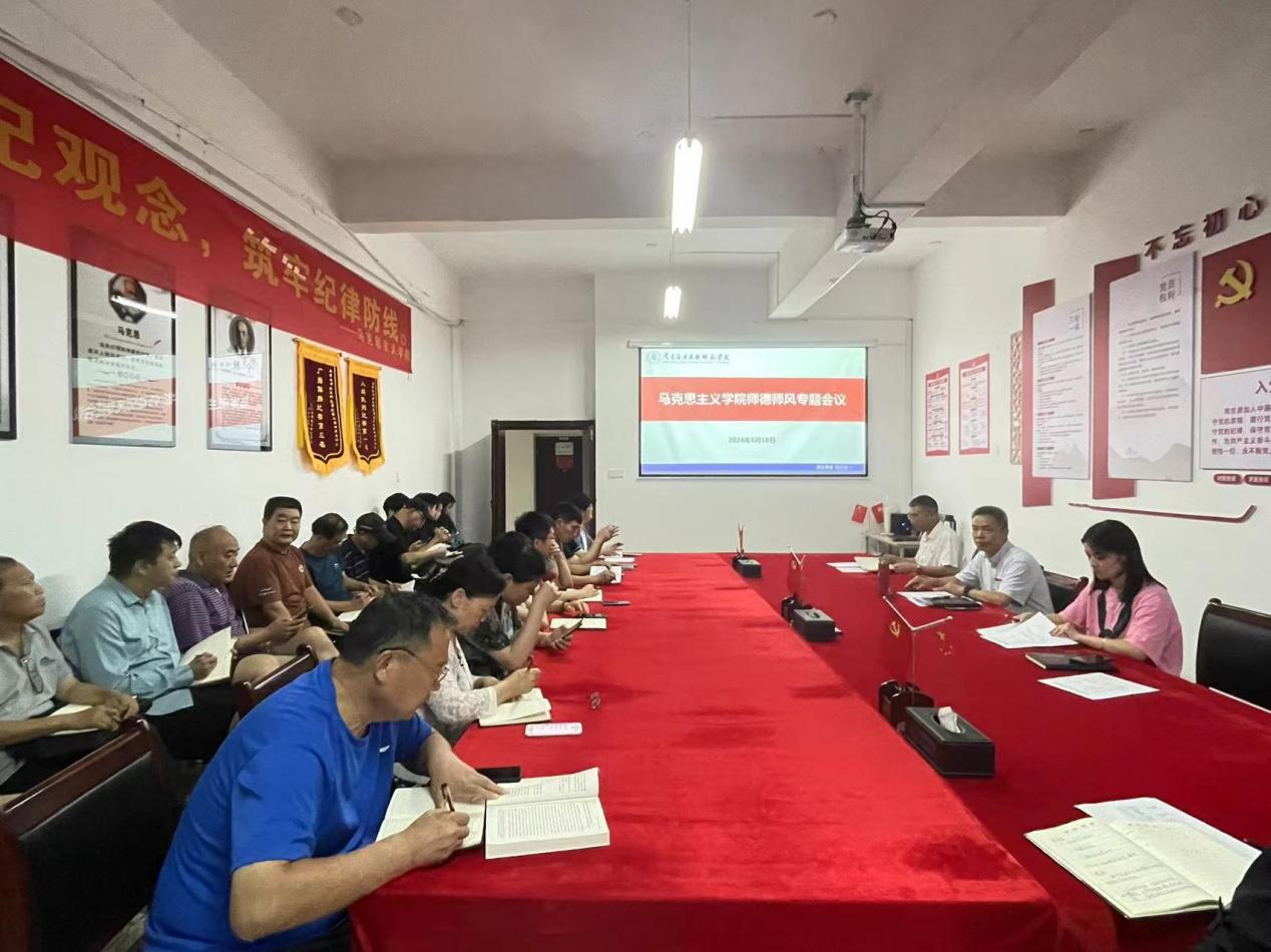 会上,学院党政班子分别领学了《新时代高校教师职业行为十项准则》《南昌应用技术师范学院师德师风考核实施办法(试行)》《南昌应用技术师范学院教师师德失范行为处理办法(试行)》《南昌应用技术师范学院教职工违规违纪处理规定(试行)》等文件。文道贵强调,全体教职工要提高思想认识,严格遵守行为规范,坚守行为底线,加强自我修养,努力建设有理想信念、有道德情操、有扎实学识、有仁爱之心的马院教师队伍。