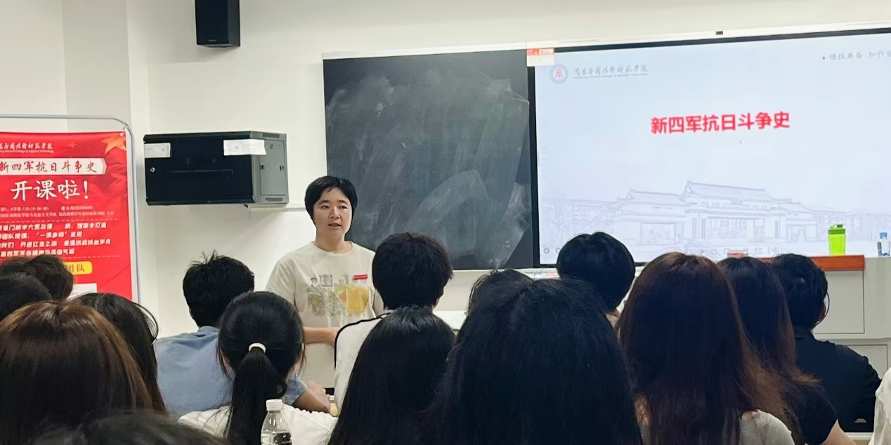 本次授课中,主讲老师张丹副教授系统介绍了课程开设的意义、具体教学安排、考核等事项。用朴素而生动的语言阐释了新四军的历史使命和伟大成绩;助讲老师文道贵教授以新四军侏儒山战役经典案例,生动讲述了新四军抗战的历史与成就。师生还就相关历史问题和学习要求进行了深刻的交流。同学们表示,本次课堂教学形式新颖、有较强感染力和吸引力,对之后的授课和实践活动也充满期待。(图/邹颖 文/张丹 审核/刘德彰)
