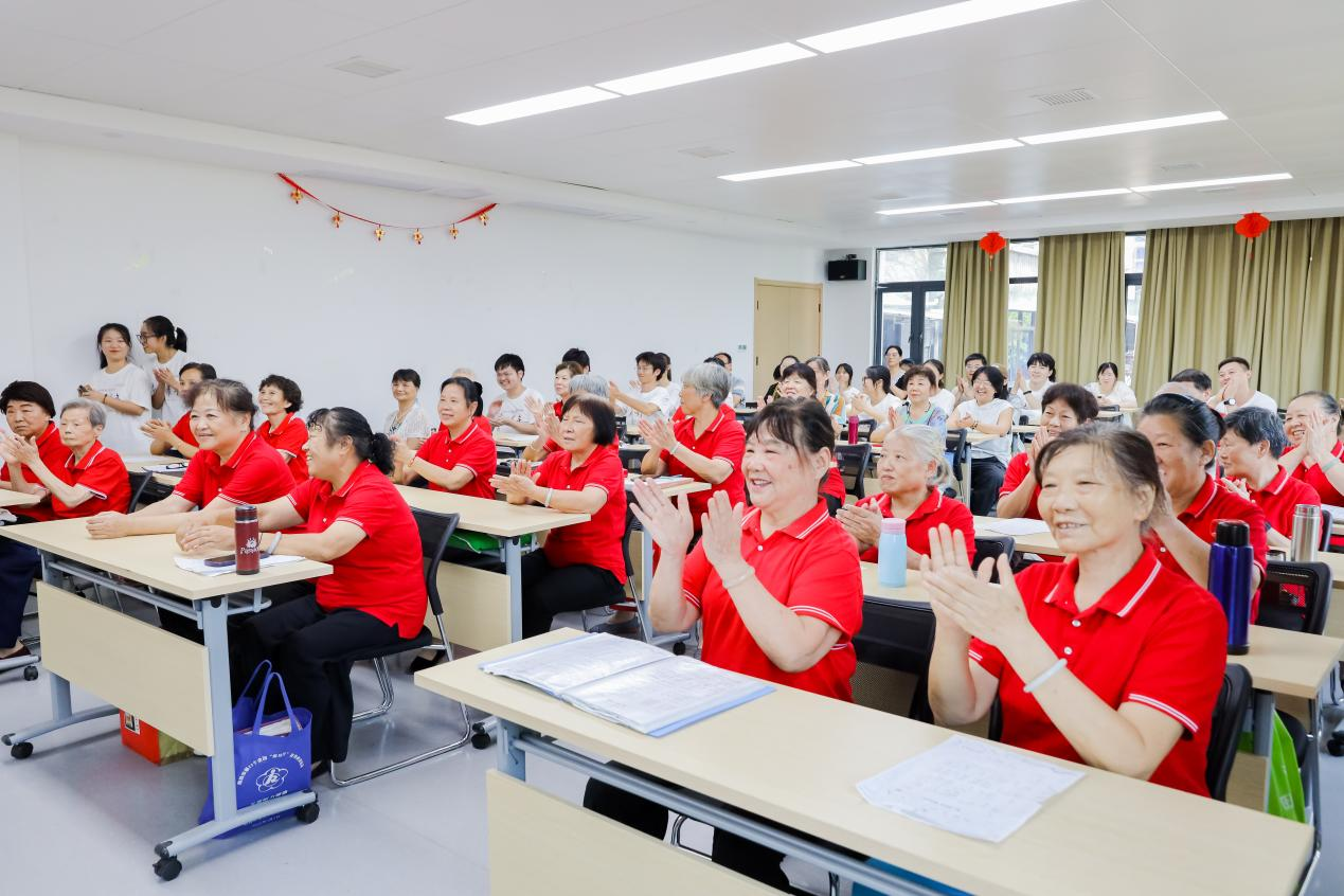 在“一老一小”幸福院,大家与光明社区居民们一起拉家常、叙幸福、话美好,更是现场共同联欢,以丰富社区居民文化生活。来自校团委的队员们深情讲述红色故事——《强国复兴 爱我国防》,将党史教育、红色精神主动传递给社区群众,帮助大家更好地了解党史国情省情,赢得了社区群众的阵阵掌声;校团委邵亿金表演动感街舞《青春律动》生动活泼、活力四射,充满青春动感;校团委彭佳莉老师的独唱《星辰大海》更是将联欢会推向高潮;光明社区“幸福大妈合唱团”一曲《歌唱党的十八大》,一下子将思绪拉回了当时习近平总书记来视察时的幸福时刻。