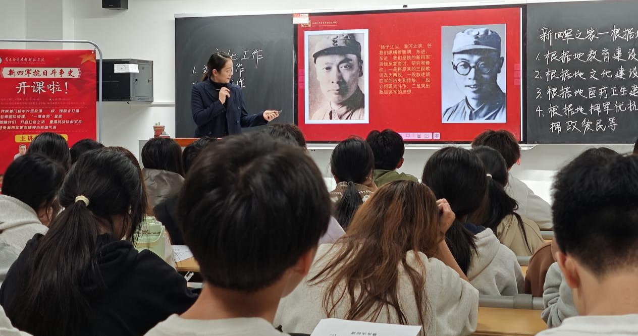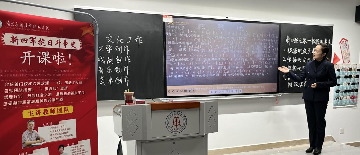 “光荣北伐武昌城下,血染着我们的姓名……东进,东进,我们是铁的新四军!”11月1日下午,著名的革命歌曲《新四军军歌》在南应师赣新校区沁苑2教A座A204教室响起。这是大思政课《新四军抗日斗争史》第四专题“新四军之家——华中抗日根据地的文化建设”课堂教学中师生的一个互动场景。这次课以“一课多师”的教学形式呈现。主讲教师为我校聘请的讲座教师、南昌新四军军部旧址陈列馆副科长刘怡嘉、助讲为日韩中文字幕亚洲中出内射青年老师戴瑞轩。