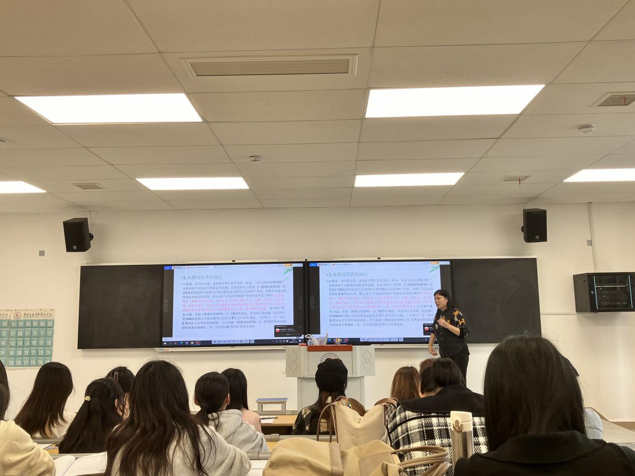 常宝莲博士以婚外同居案例引出话题,并从同居的两种类型、性质、法律处理等方面,结合案例分析,清晰地阐述了关于同居行为涉及的相关法律规定。教学过程中,常博士注重调动学生的积极性,引导学生对问题进行分析和思考,整个课堂气氛活跃,教师与学生形成了良好的互动。