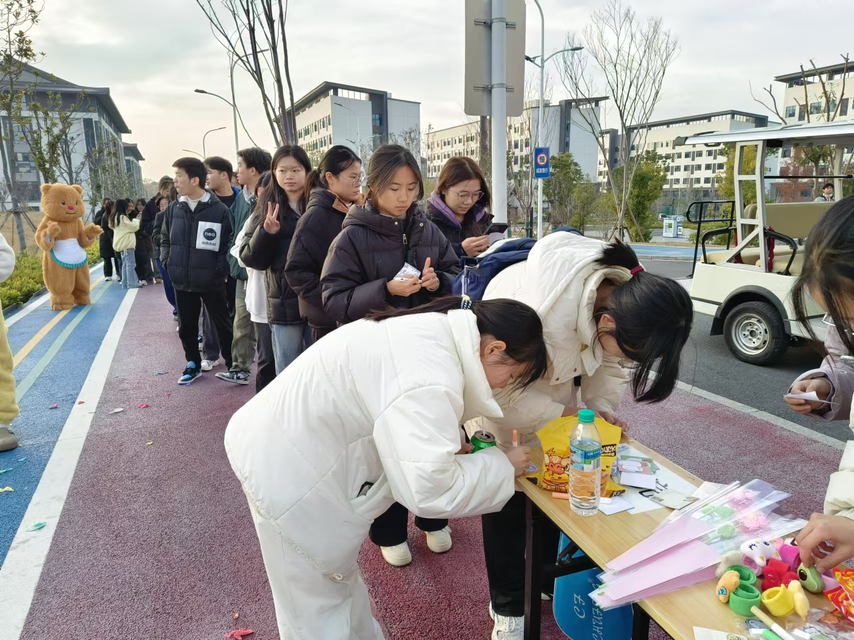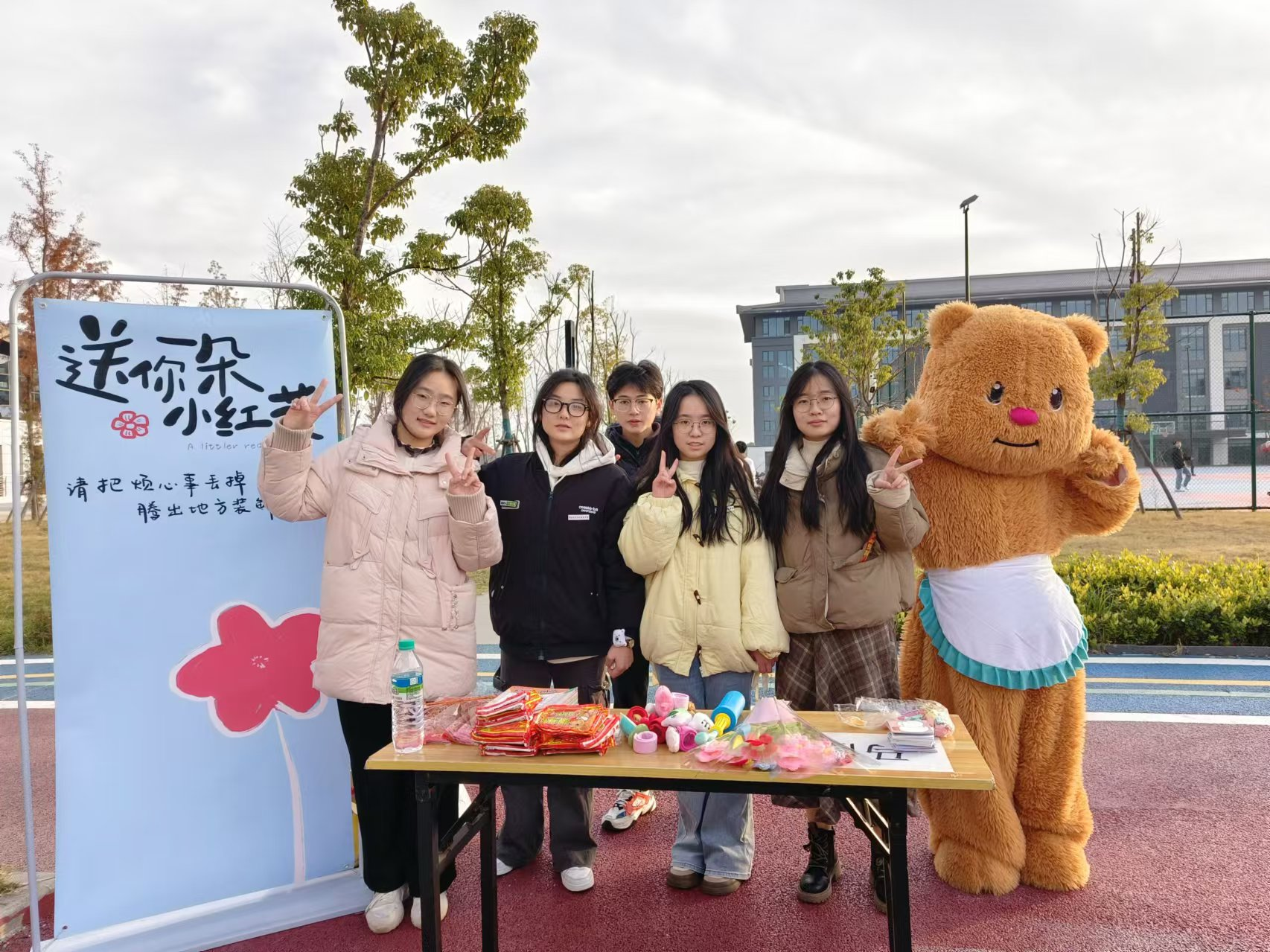 活动现场布置得温馨而富有创意,各种释压工具和游戏区域布置得井井有条。一系列精心设计的“解压小游戏”轮番上演,如“看字说颜色”,“爆破气球”等,这些游戏不仅趣味横生,还巧妙地融入了释压的元素,此外,现场还有温暖熊抱,这些活动让学生们在欢声笑语中感受到了集体的温暖和力量。