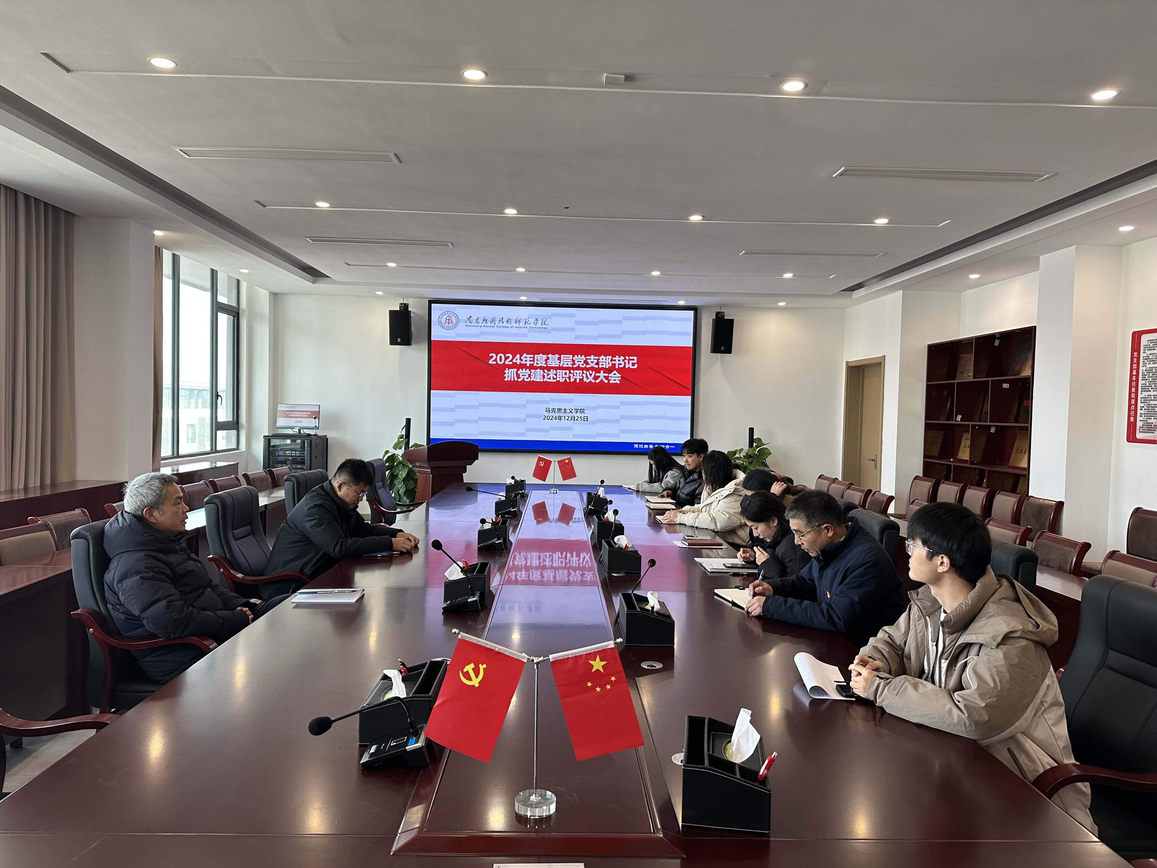 为深入贯彻落实全面从严治党要求,进一步加强基层党组织建设,提升基层党支部书记抓党建工作能力,2024年12月25日,我院党总支在沁苑七实506党员活动室召开了2024年度基层党支部书记抓党建述职评议大会。 会议由学院党总支书记张欣康主持,学院党政领导班子成员、党总支委员会委员、各党支部书记、党员师生代表参加会议。