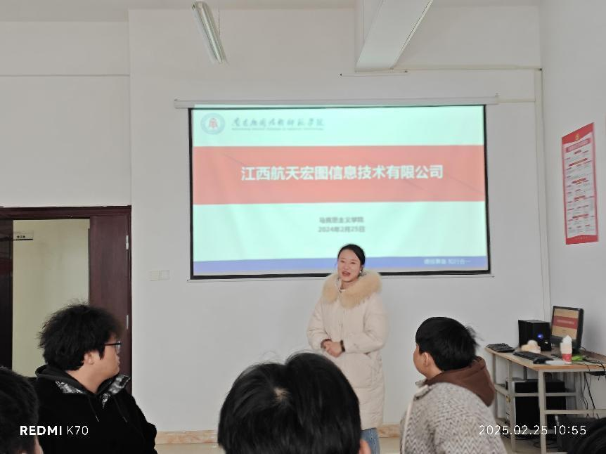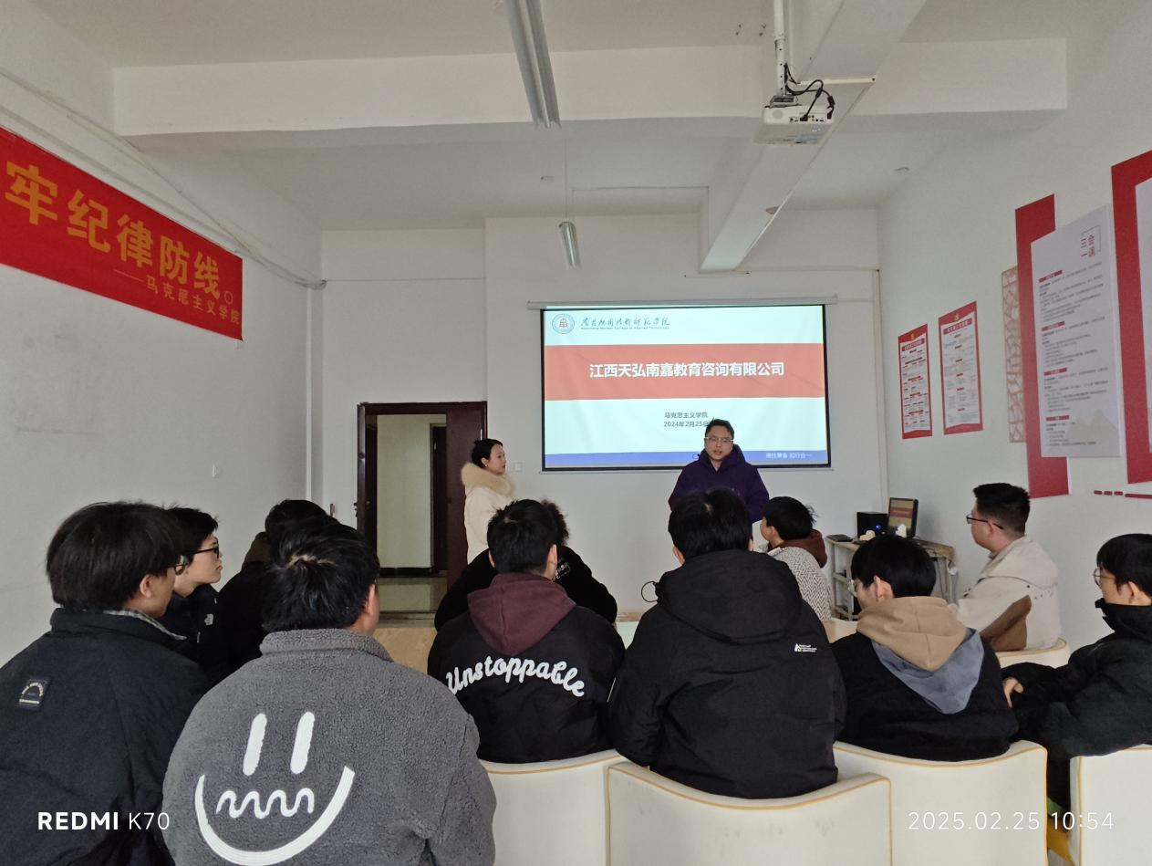 2025年3月5日,马克思主义学院迎来了一场别开生面的就业活动。我院邀请到江西航天宏图信息技术有限公司、江西天弘南嘉教育咨询有限公司成功举办了一场小型而精准的招聘会,为即将步入社会的学子们搭建了一个直面企业的宝贵平台。