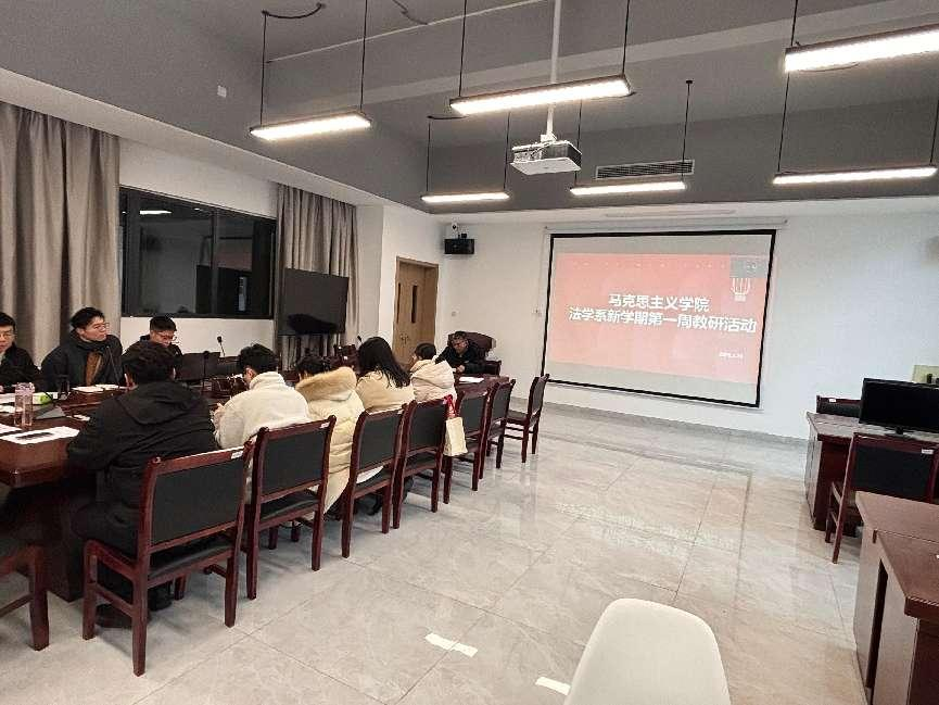 2025年2月25日下午14:00,法学系在沁苑七实405室召开新学期第一周教研活动——教学管理与质量提升研讨,副院长刘德彰出席活动,全体教师通过线上线下相结合的形式参加。