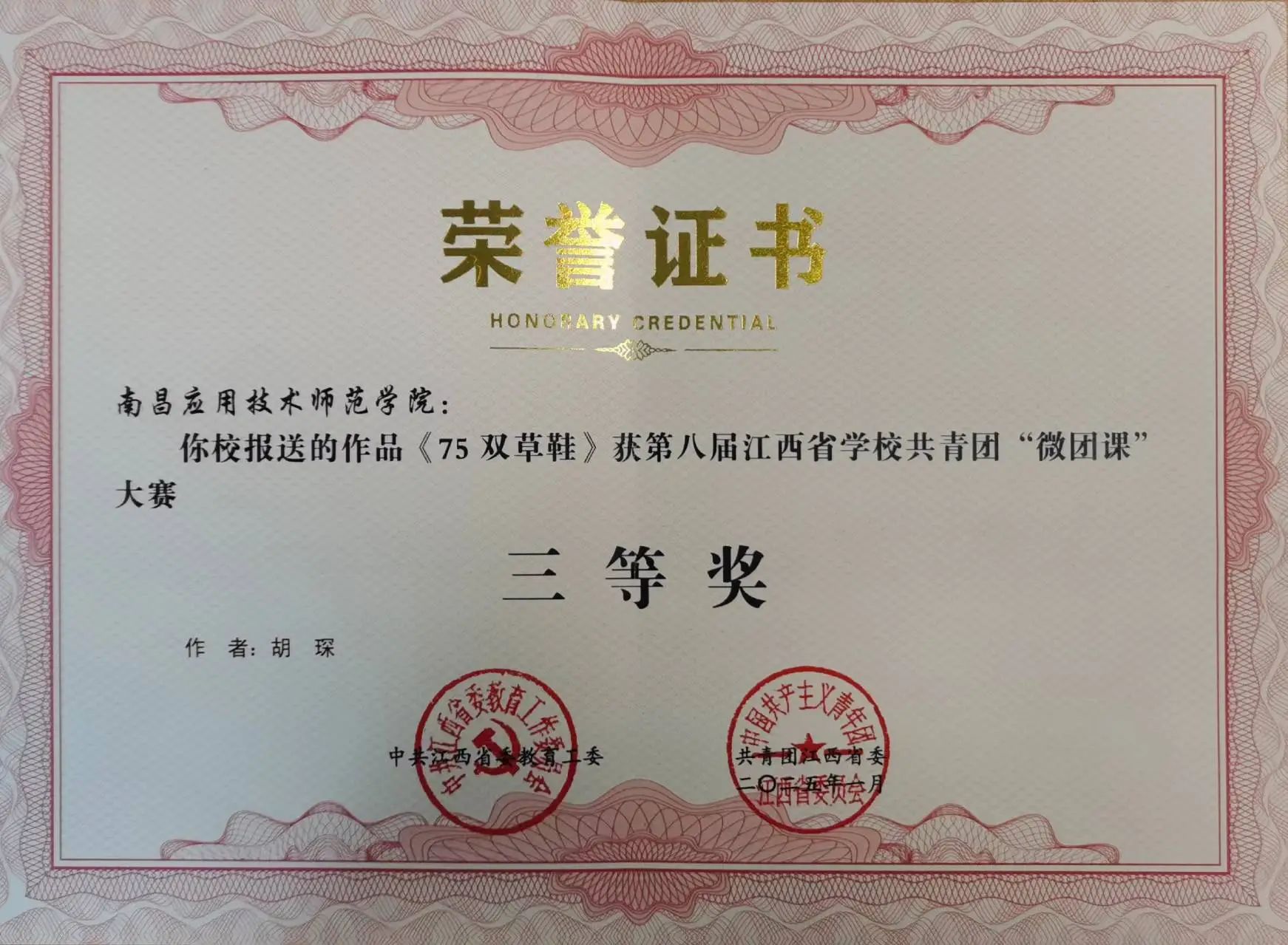 近期,我校师生在省委教育工委、团省委联合举办了第八届江西省学校共青团 “微团课”大赛中取得了优异成绩。其中我院胡琛老师获三等奖。