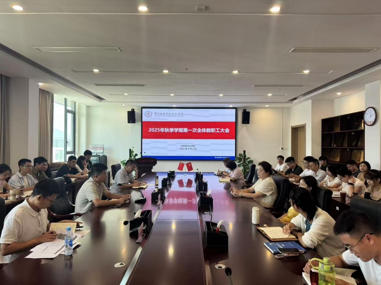 9月2日下午,学院在沁苑七实506会议室召开2025年秋季学期第一次全体教职工大会,党总支书记张欣康、副院长刘德彰、院长助理杨志明出席会议并讲话,学院全体教职工参加会议。